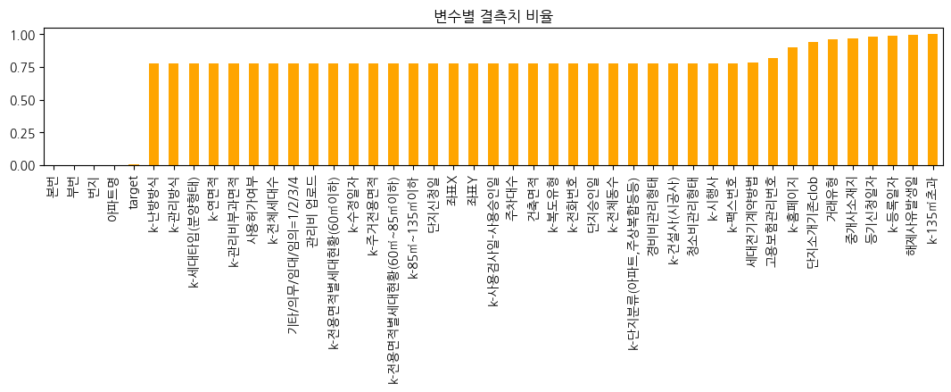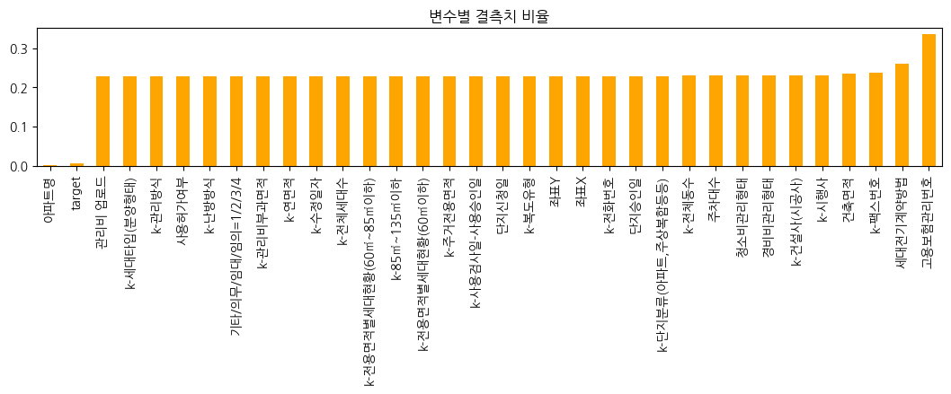 - 타 컬럼 대비 '번지', '본번', '부번', '아파트명' 의 경우 결측률이 대략 0.2% 이내임을 파악